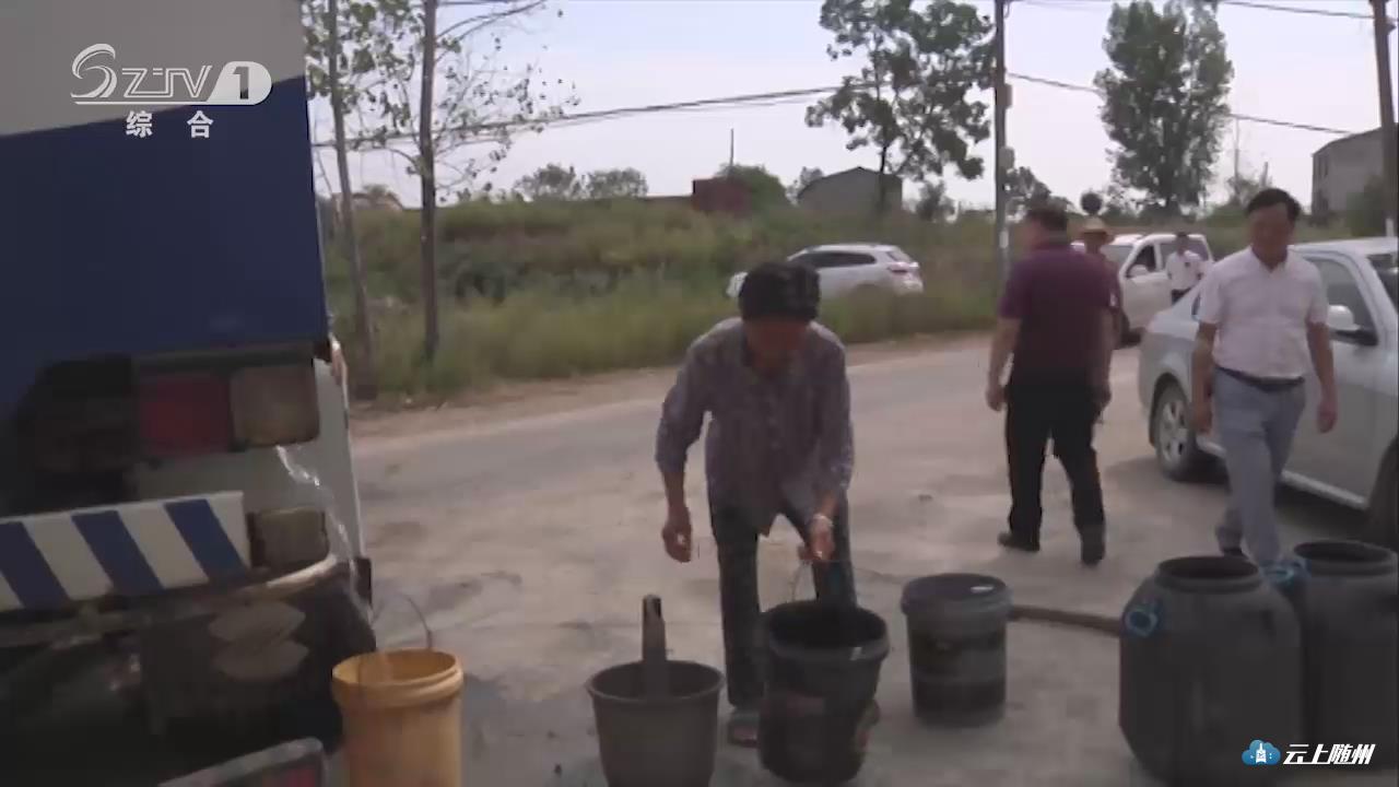 上午十点半,送水车来到烟墩包村一处取水点,早已有村民挑着水桶等在那里。工作人员一边将车上的自来水往大水箱里输送,一边将大家拿来的水桶一一灌满。村民余文存是这处取水点的负责人,他说,今年天旱,村里许多堰塘都干涸了,人畜饮水也成了问题,要不是自来水公司和环卫部门的帮助,老百姓连水都喝不上。
