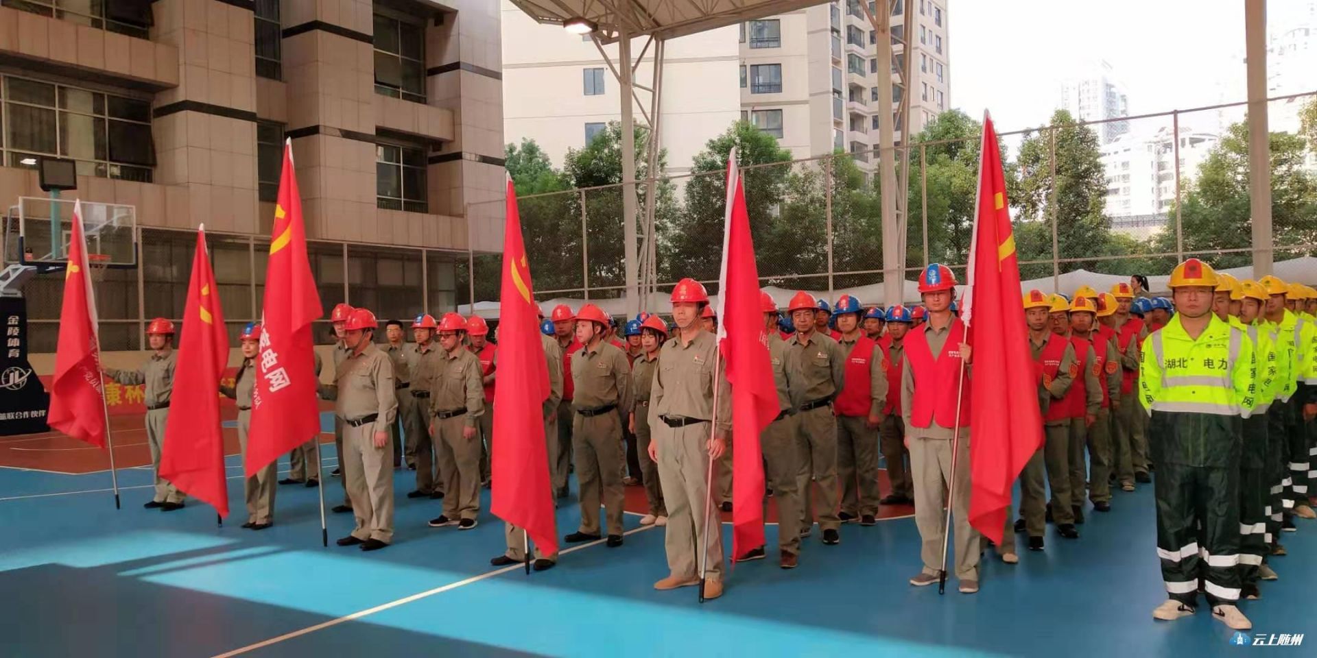 9月26日上午国网随州供电公司举行第七届世界军人运动会保电誓师大会,235名保电队员当天出发,赴汉参与军运会“保电”工作。