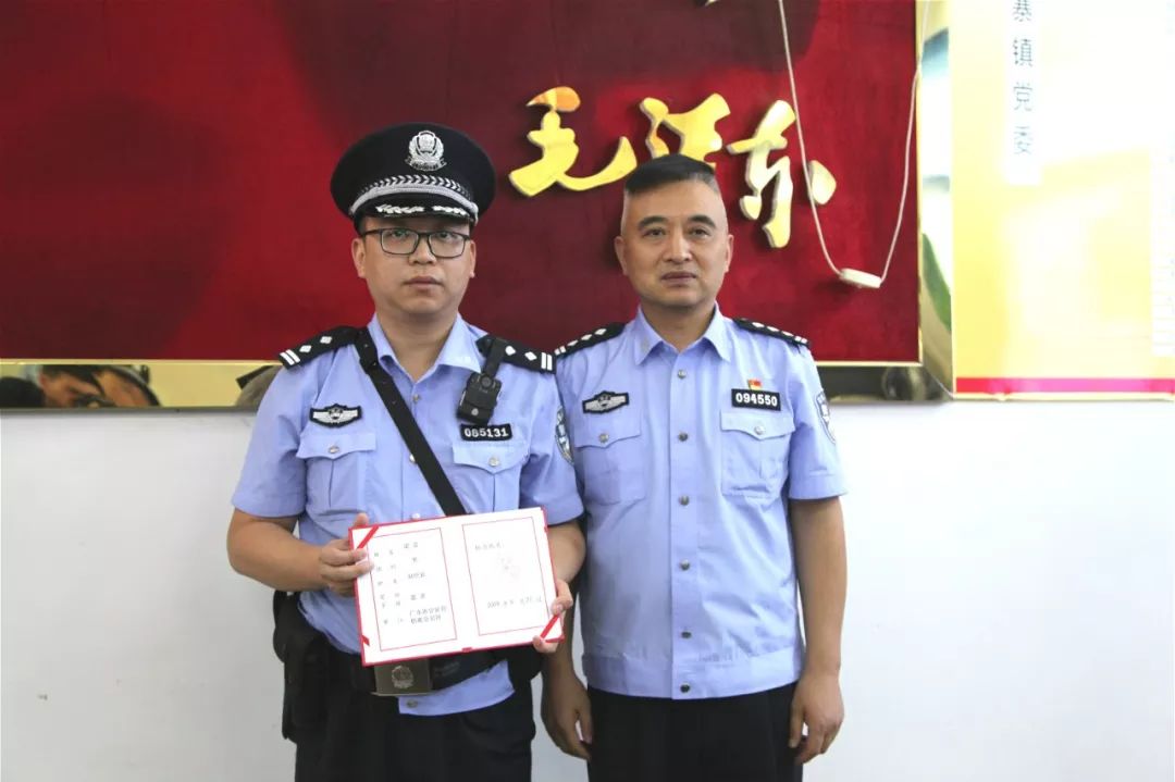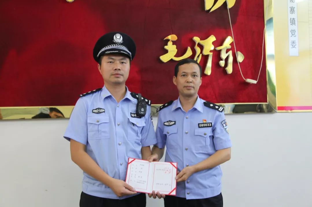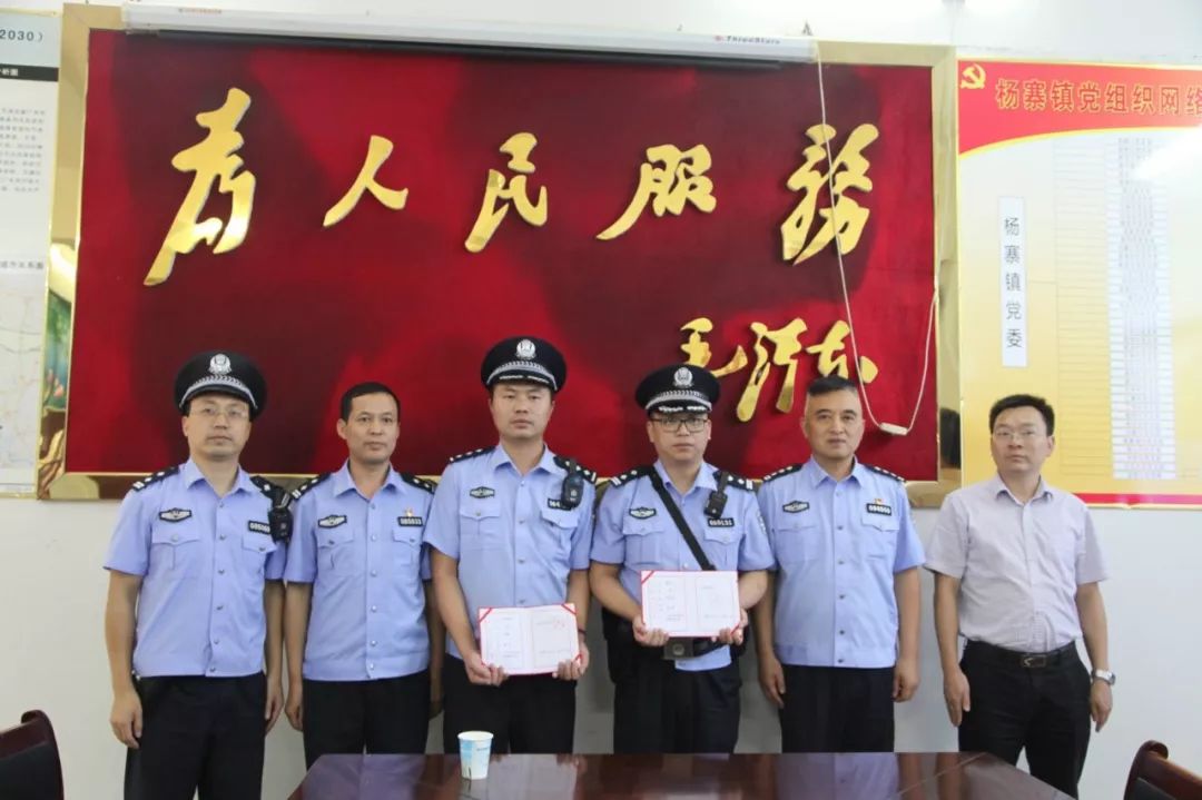 随州市公安局政治部宣教科科长常军宣读嘉奖令,广水市公安局杨寨派出所副所长梁浩、民警罗南鹏各嘉奖一次,颁发证书及奖金2000元。