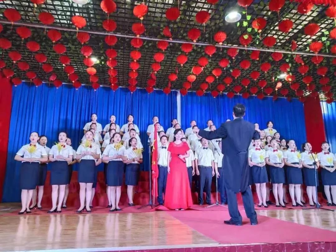 金秋九月山河美,华夏大地谱新篇。为了庆祝中华人民共和国成立70周年,唱响时代主旋律,展现当代教职工精神风貌,9月27日下午,殷店镇中心学校在学校礼堂举行“壮美七十年,奋进新时代”全镇教职工大合唱汇报演唱会。中心学校全体行政管理人员,全镇9所公办学校(幼儿园)全体教职工,部分学生代表和家长代表,近1000人参加此次活动。