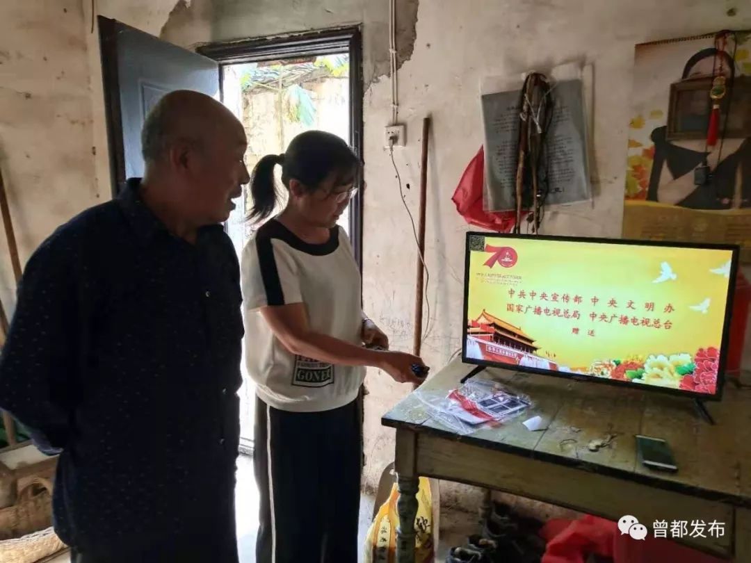 此次由中宣部、中央文明办向贫困地区和困难家庭赠送电视机,曾都区赶在国庆之前送到贫困户家中,让他们能收看明天的国庆庆祝大会,在贫困地区更好地传播党的声音,送去党的温暖,让贫困群众共同感受新中国成立70年来经济社会发展成就,激发贫困群众内生动力。