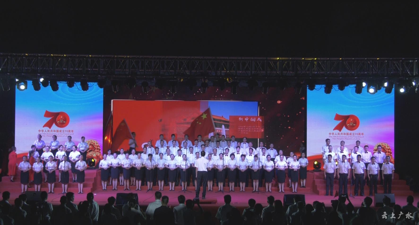 9月29日,广水市庆祝中华人民共和国成立70周年歌咏晚会在东岳广场举行,15个系统及镇办,15支合唱队,16首耳熟能详的歌曲轮番上场,激昂的旋律在广场上空久久回响。