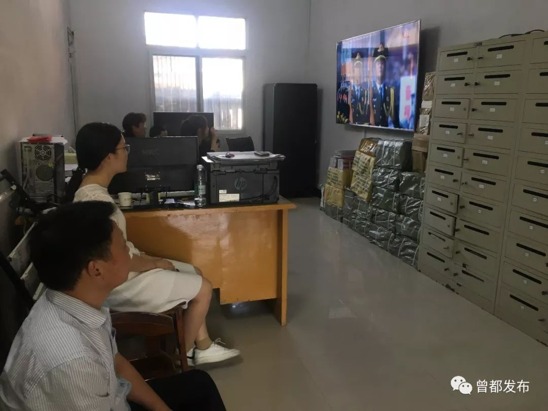 升旗仪式结束后,曾都区各地各部门干部群众通过电视直播,收看庆祝中华人民共和国成立70周年庆典及阅兵仪式盛况。
