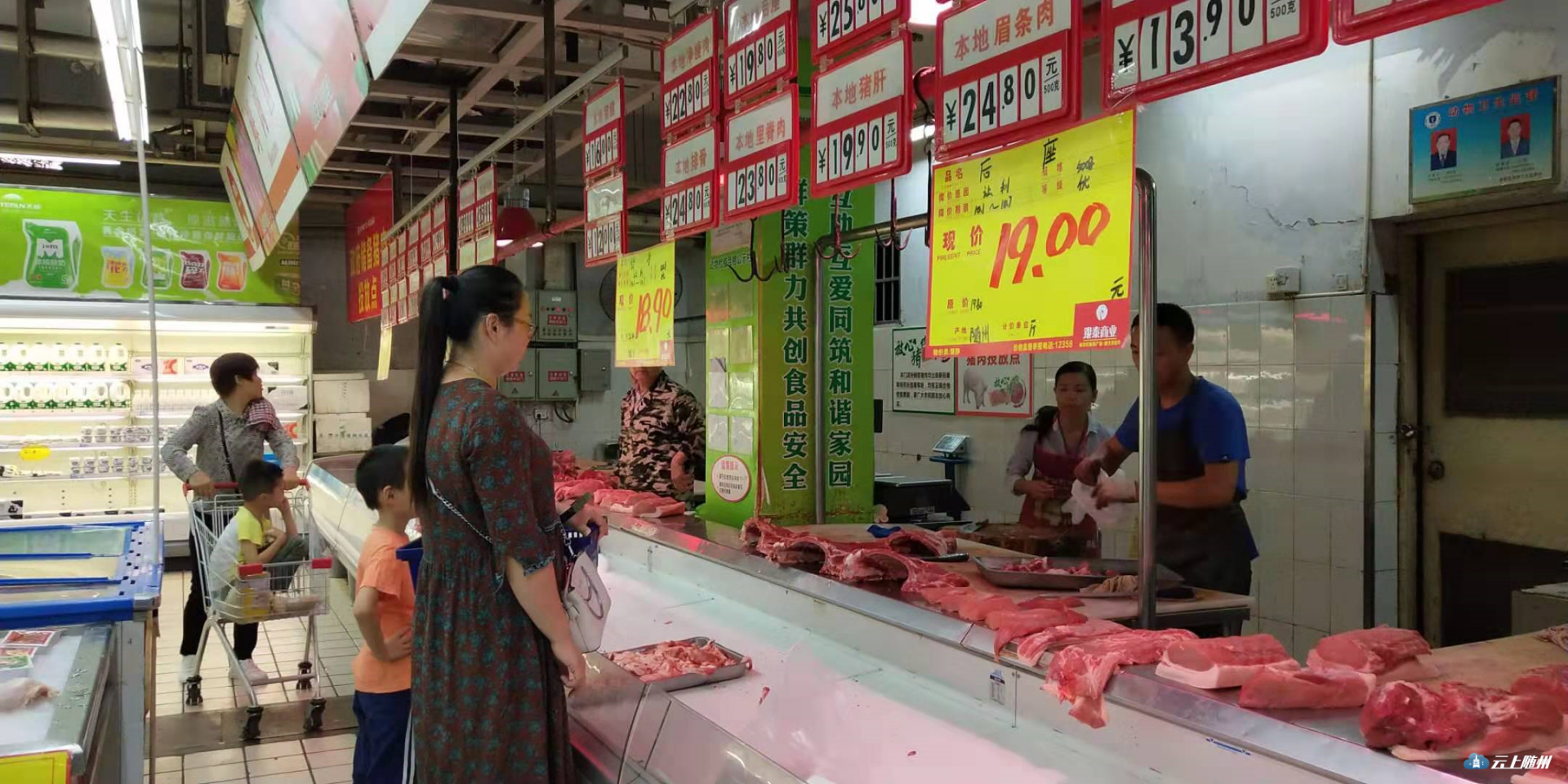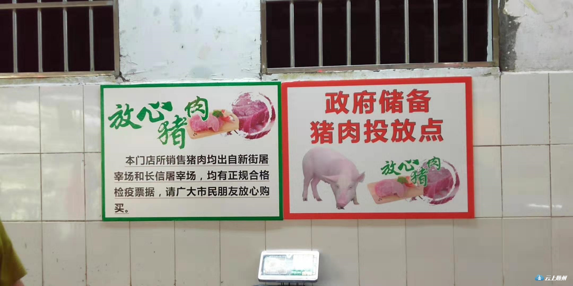 在五眼桥农贸市场,一家猪肉摊贩前,悬挂着政府猪肉储备投放点的牌子,动物检疫合格证明和肉品肉质检验合格证也放在了醒目的位置。摊主刘盖武告诉记者,他从早上5点就已经出摊开始销售了,早上杀了两头猪,500多斤,现在9点多,已经卖的剩下三分之一了。