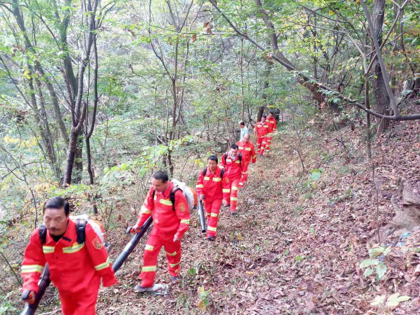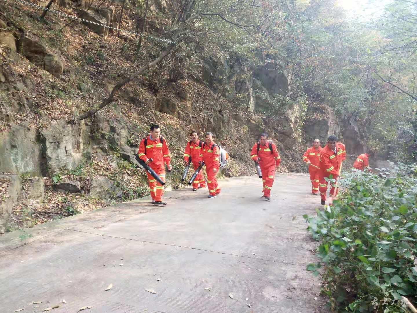 国庆长假,三潭风景区游人陡增,游客在欣赏美景的同时,也能经常看到一群身穿桔黄色森林防火服,身背灭火机的护林防火员在林间穿梭,他们时而清理路边杂草枯叶,时而向过往游客宣传护林防火法规和安全知识,成为景区一道独特而又亮丽的风景线。