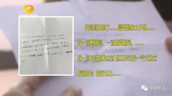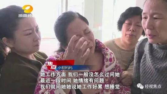 湖南经视《经视焦点》微信公众号12月8日消息,今年26岁的年轻女子小程在长沙一家公司上班,从事财务工作,按理说属于很多人羡慕的白领阶层,但12月5号下班后,小程却一直没有回家,家人找了一晚上,第二天才发现,小程竟然在公司大楼的楼梯间上吊身亡!还留下一封遗书说“自己真的累了,一直想休息”。