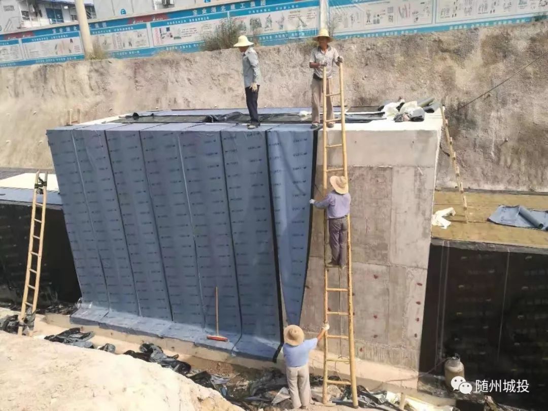 文帝大道正在进行综合管廊防水卷材铺设。