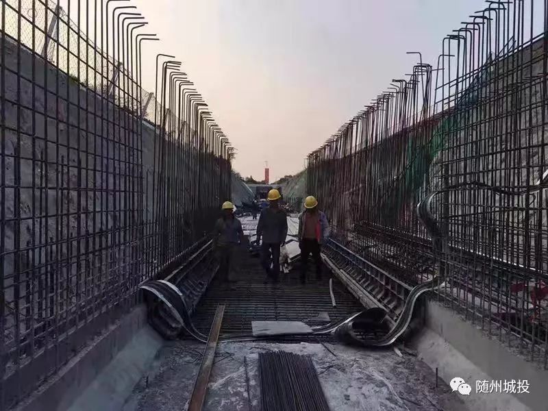 绕城南路地下综合管廊正在进行混凝土浇筑,主体及节点舱室钢筋绑扎、立模板等工序施工。目前全线管廊主体底板完成 3708米,占总量的89.3%,主体结构顶板完成3325.6米,占总量的80.1%,土方回填完成2740米。