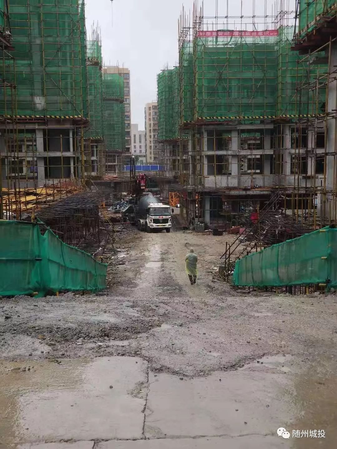 涢水棚改二期正在进行地下室及主体结构施工,目前主体结构已施工至5层。