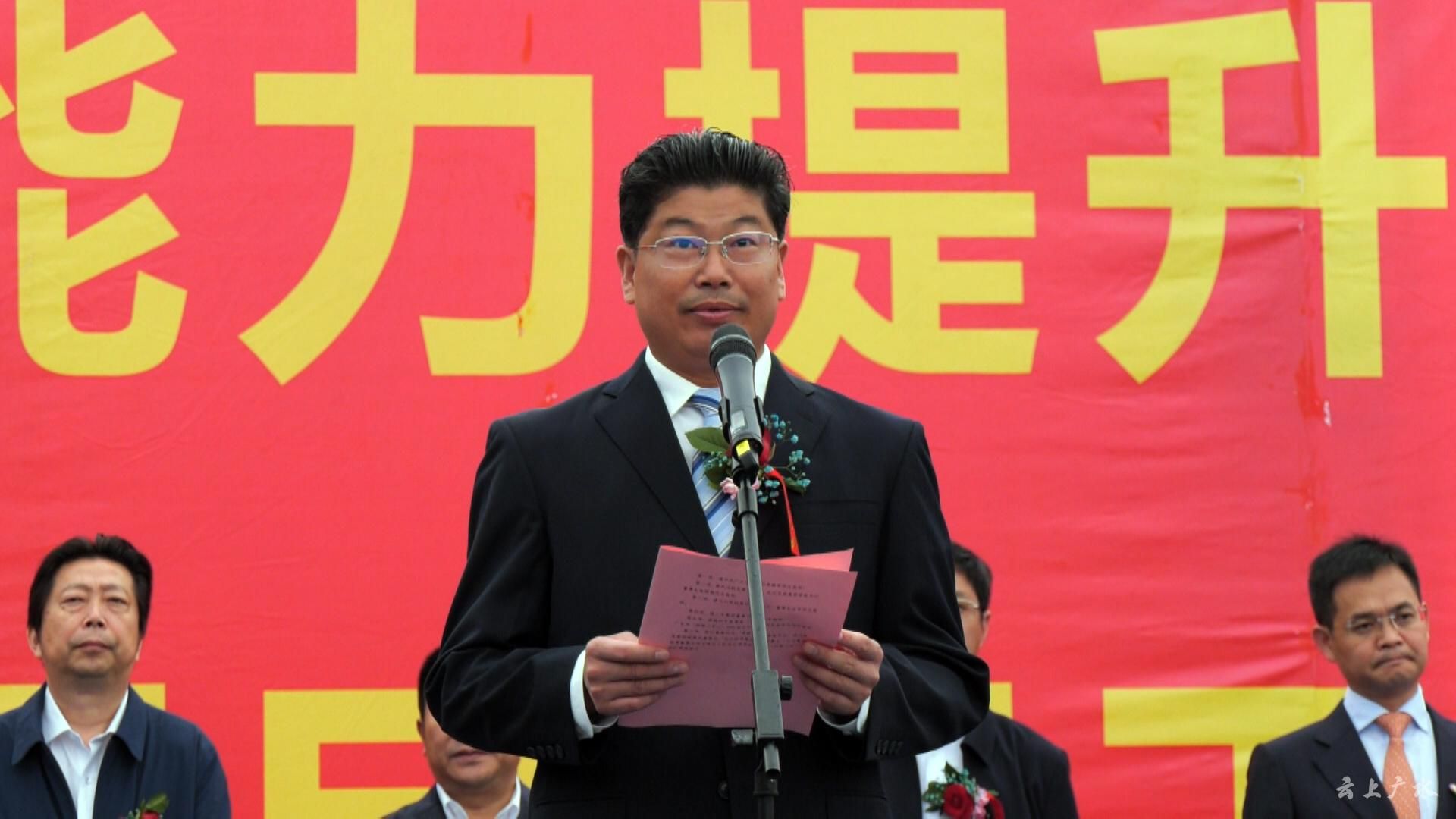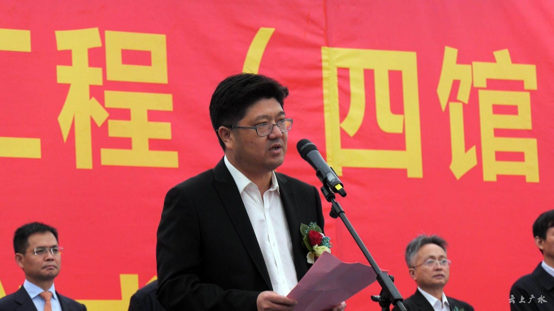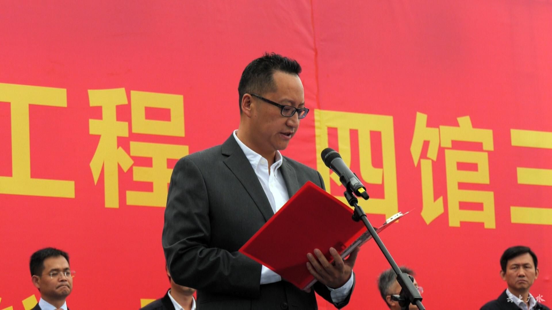 田涛主持仪式并代表广水市委、市政府对项目顺利落户、开工建设表示祝贺!田涛指出,“四馆三中心”PPP项目是随州市、广水市的重大民生建设工程,广水市委、市政府高度重视,94万广水人民高度关注。他表示,有随州市委、市政府领导的亲切关怀,有武汉航发集团、汉江国投集团领导的战略合作,有襄阳市政建设集团、武汉市政建设集团两大国有企业的强强联合,有广水全市人民的众志成城,“四馆三中心”项目必将建设成为城市未来的新地标,生态新城必将打造成文化与生态高度融合的先行示范区。