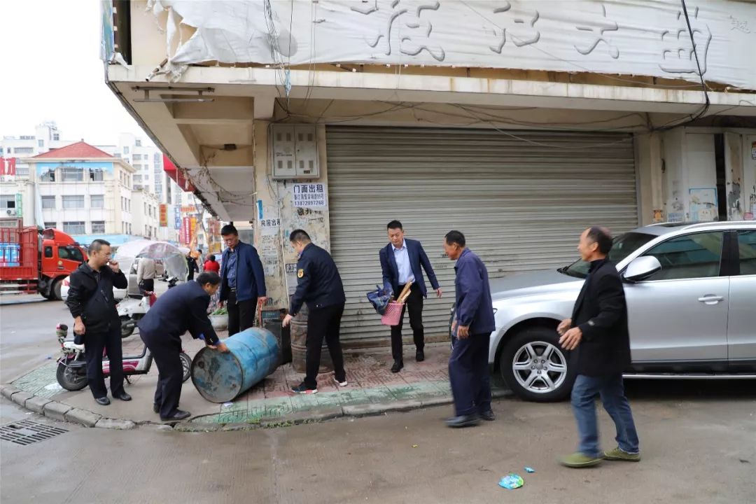 10月8日,城管执法人员和东城办事处工作人员对香江商贸市场环境秩序开展集中整治。