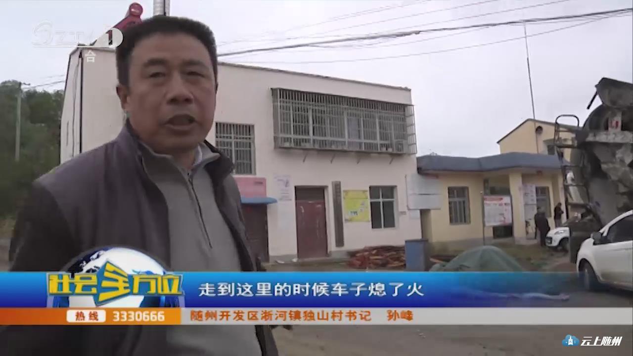 【采访】随州开发区淅河镇独山村书记 孙峰:这个事情是这样的,那天有一个小轿车从下面上来,这里的路况不是很好,走到这里的时候车子熄了火,这个浇灌车从上面下来来不及(刹车)。