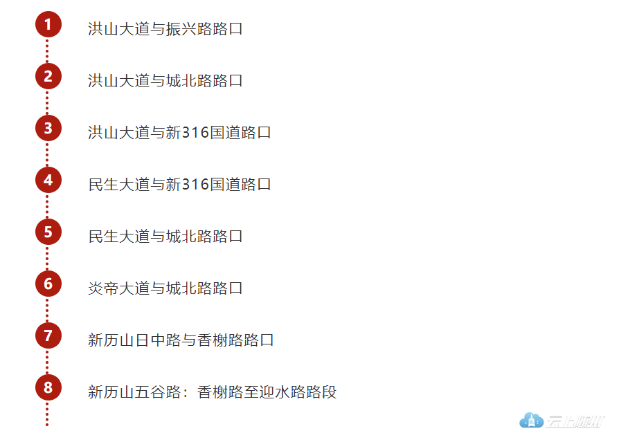 为进一步维护道路交通秩序,预防和减少道路交通事故的发生,保障道路交通安全畅通、文明有序,根据《中华人民共和国道路安全法》及《中华人民共和国道路交通安全法实施条例》、《湖北省实施(中华人民共和国道路安全法)办法》等法律法规的规定,随县公安局交通警察大队经报备审批决定在县城区部分路段、路口设置8个点位智能交通技术监控设备,主要抓拍驾驶机动车不按道路交通信号灯通行、机动车通过有灯控制路口时,不按所需行进方向驶入导向车道、违法停车等交通违法行为进行抓拍并予以处罚,现公告如下,并于2019年10月10日零时正式启用。
