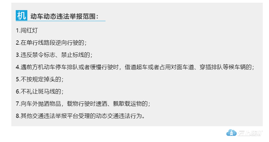 还是那句话,举报、处罚不是目的,让道路更加畅通、有序,市民出行更加安全,才是我们最终的追求!所以,排队等候时,你还敢乱插队吗?路口红灯亮起时,你会不会依然向前?为了图方便,你还会乱走非机动车道吗……有了交通违法举报平台,这些交通违法行为将无处遁形!