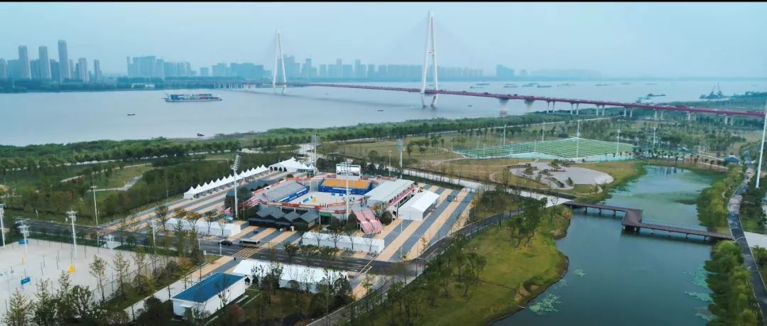 汉阳江滩沙滩排球中心:项目位于武汉市汉阳区鹦鹉堤段汉阳江滩,设观众席位1116座。为新建(临时建筑)项目,赛时主要承担女子沙滩排球项目比赛。