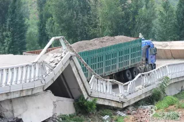 压垮粤赣高速一座新桥,瓷土比较轻,单辆才100吨,也是: