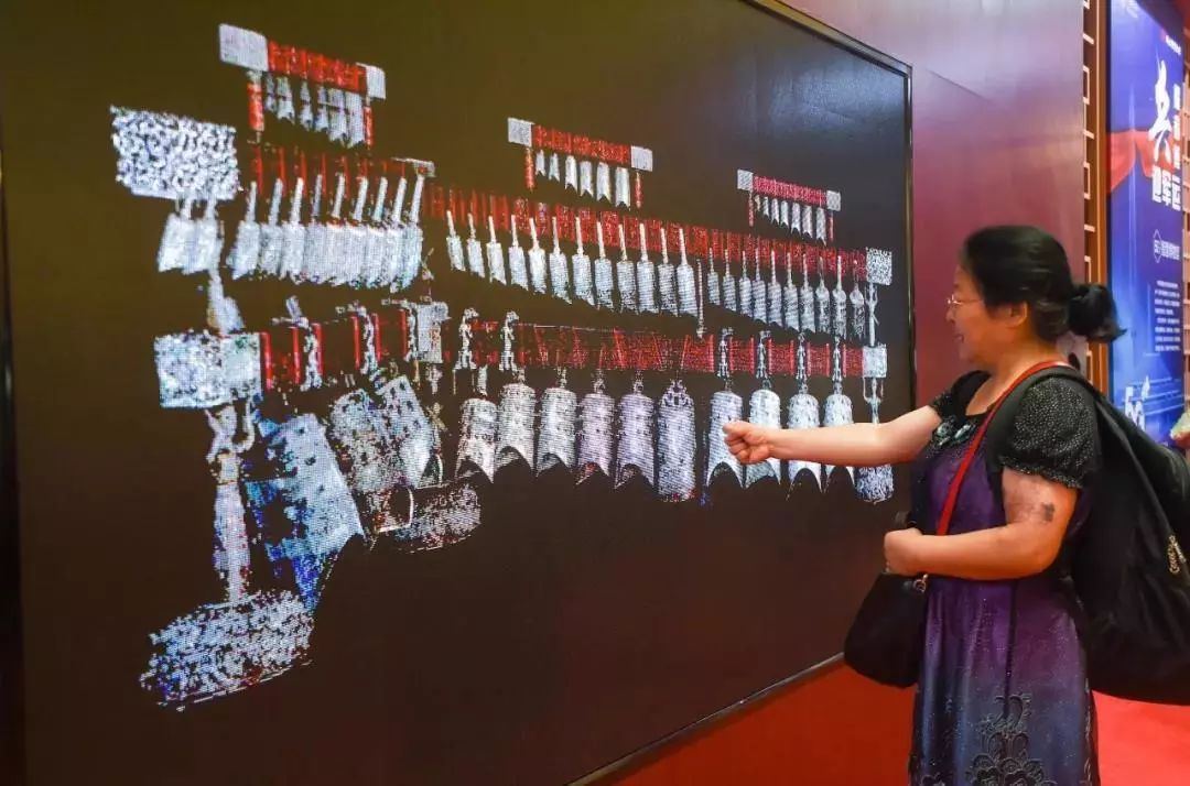 “利用全息投影互动技术,在互动区模拟敲击,观众可听到真正来自曾侯乙编钟的声音。你可以亲自以手代槌进行敲击……下层的钟声浑厚悠长、上层的磬声清脆悦耳。”省博相关负责人介绍,这是该馆“5G智慧博物馆”推出的最新展示。今年5月,省博在全国率先实现5G网络全馆覆盖。