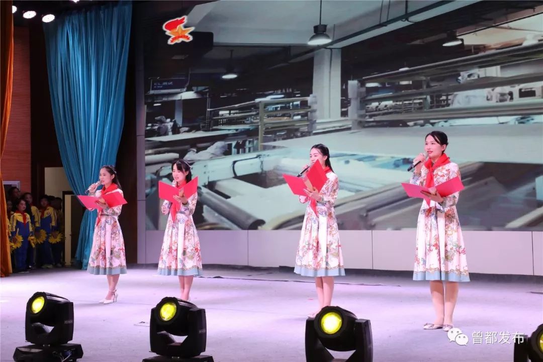 五眼桥小学少先队员诵读《争做新时代好队员》,南郊中心小学经典传唱《游子吟》,两水学校老师朗诵《写给未来的少先队员的一封信》,展现了主题实践活动成果。