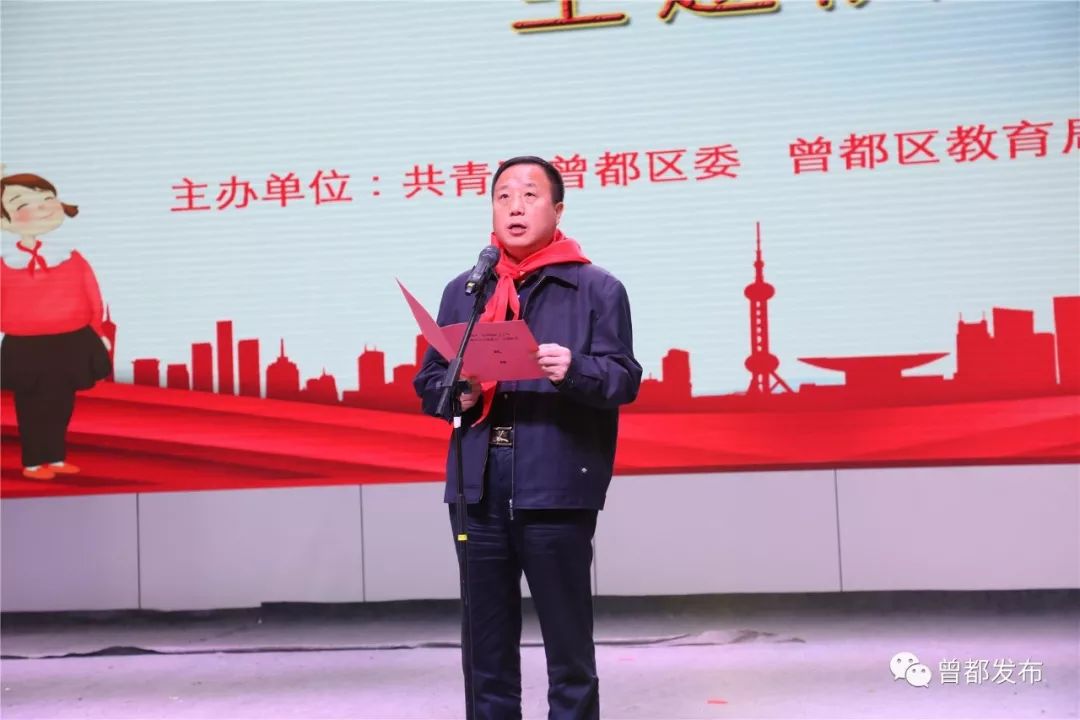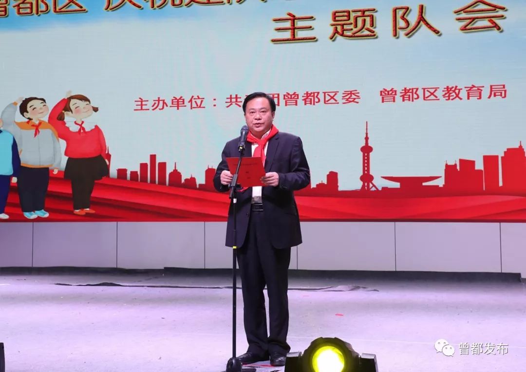 希望全区少先队员小朋友们,要坚定信念,成为理想远大的新一代,从小树立远大抱负,为祖国繁荣争光、为曾都发展增辉。要修身立德,成为品德高尚的新一代,积极参与品质随州示范区建设,争做文明美德的传承者、文明风尚的传播者、文明榜样的传颂者,努力成为一个品德高尚的人。要勤学善行,成为本领过硬的新一代,不断掌握科学方法,培养科学精神,不断提高学习能力,培养创新意识和创新能力,运用学到的知识解决生活中的困难和问题,做到知行合一。要锤炼意志,成为身心健康的新一代,要锤炼强大内心,磨练坚强意志,知难而进,不怕挫折,积极向上,锐意进取;热爱生活、体验快乐,学会感恩、懂得珍惜、善待生命,在金子般的童年里实现个人的全面发展。