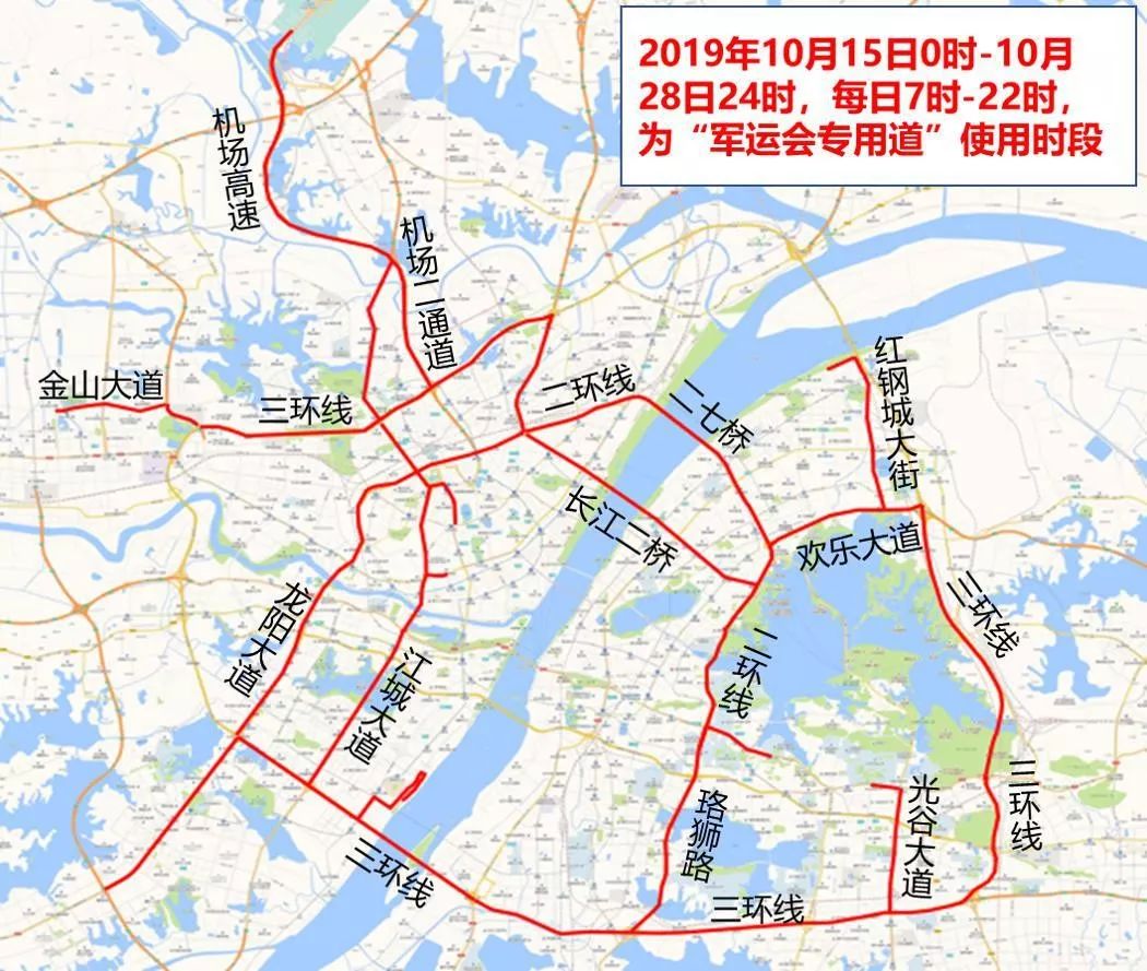 10月15日至28日每日7时至22时, “军运会专用道”仅允许持有“军运会专用车辆通行证”的车辆及执行任务的警车、消防车、救护车、工程救险车通行,市民如驾驶机动车出行,请勿占用“军运会专用道”行驶。