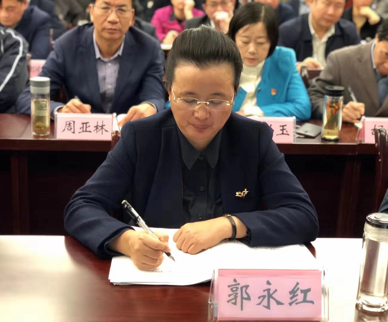 市长郭永红,市委常委、常务副市长林常伦,市委常委、市政府党组成员吴丕华,副市长、市公安局长熊桢,副市长吴超明、郑晓峰,市政府党组成员、秘书长张健等参加收听收看。