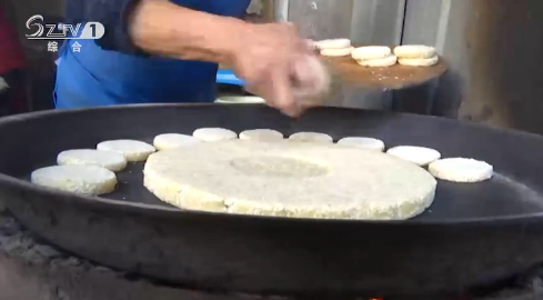 【采访】街坊 刘先生:这就是我们小时候的味道,我们经常来吃,孩子们都喜欢吃,要的就是这种小时候的味道啊,比其他的饼子要香一些,慢工出细活,老人做的,现在东西做得好看做得快,但是没有这个手工做的味道好。