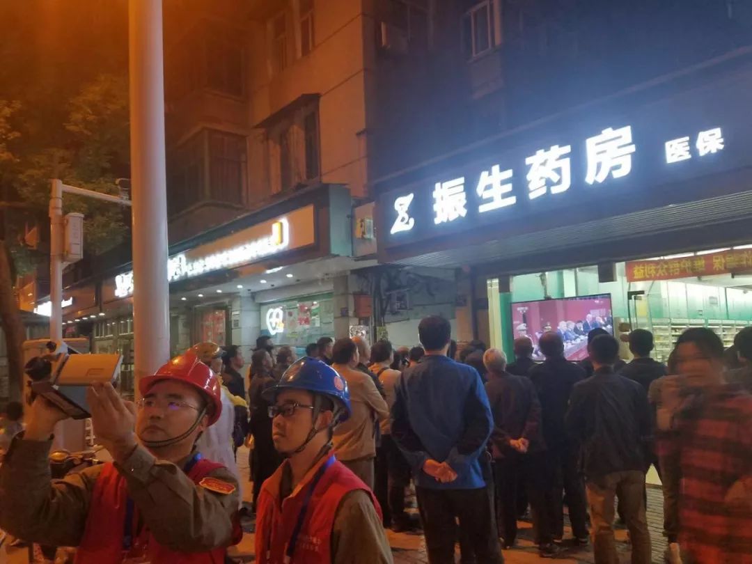 10月18日晚,国网广水市供电公司吴晨、周琪所辖路段开展夜巡,因保电任务在身,两人与背后电视中播放的军运会开幕式遗憾错过。(夏紫君)