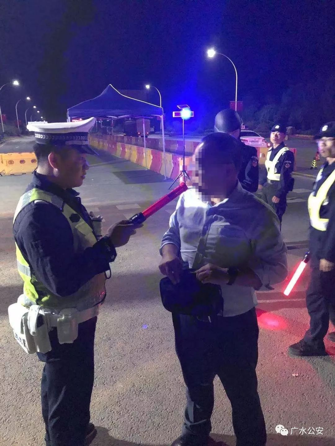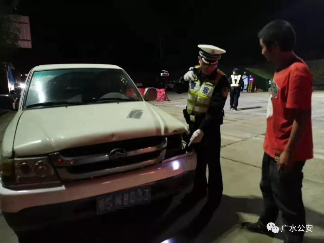 为给军运会营造一个良好的外部治安环境,夜幕下的国道、省道广水段及汽车客运站等6个检查站点,执勤交警、辅警和“所队合一”中队民警昼夜不休,轮流24小时上岗执勤,严查酒驾、醉驾和交通违法行为,严防重大交通事故。