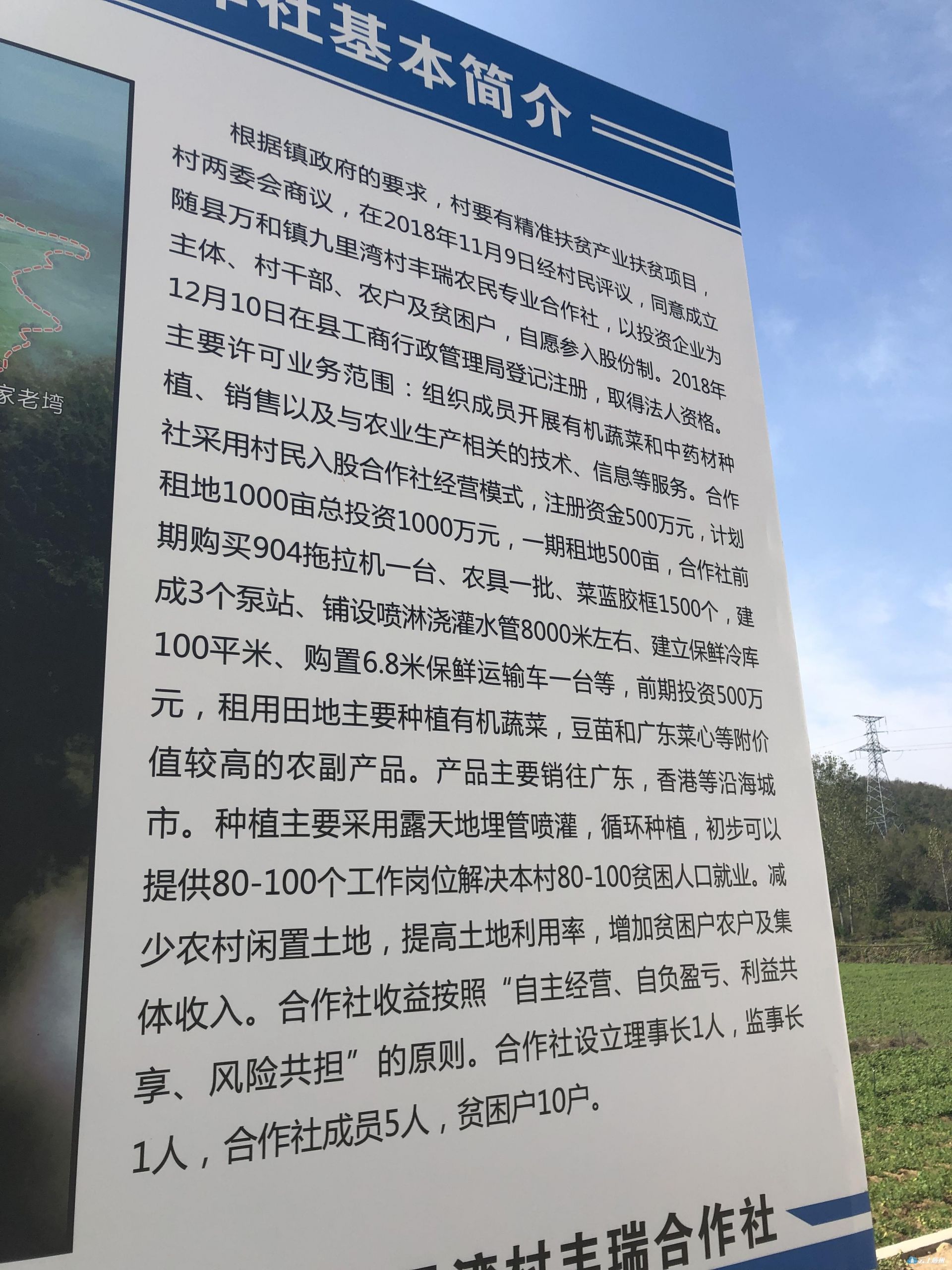 朱世才告诉记者,2018年12月份我就有这样的想法,把所有农民的田地尤其是贫困户的田地,我们把它流转到手里,目前一共流转了40多家贫困户的田。面积达到了500亩,其中一部分种田植豆苗。去年底,经随县政协、县供电公司多方努力,帮助九里塆村引进随州琼圃农业有限公司,成立了九里塆村丰瑞农民专业合作社,专门种植菜苔、菜心、豆苗等蔬菜,卖到沿海城市。