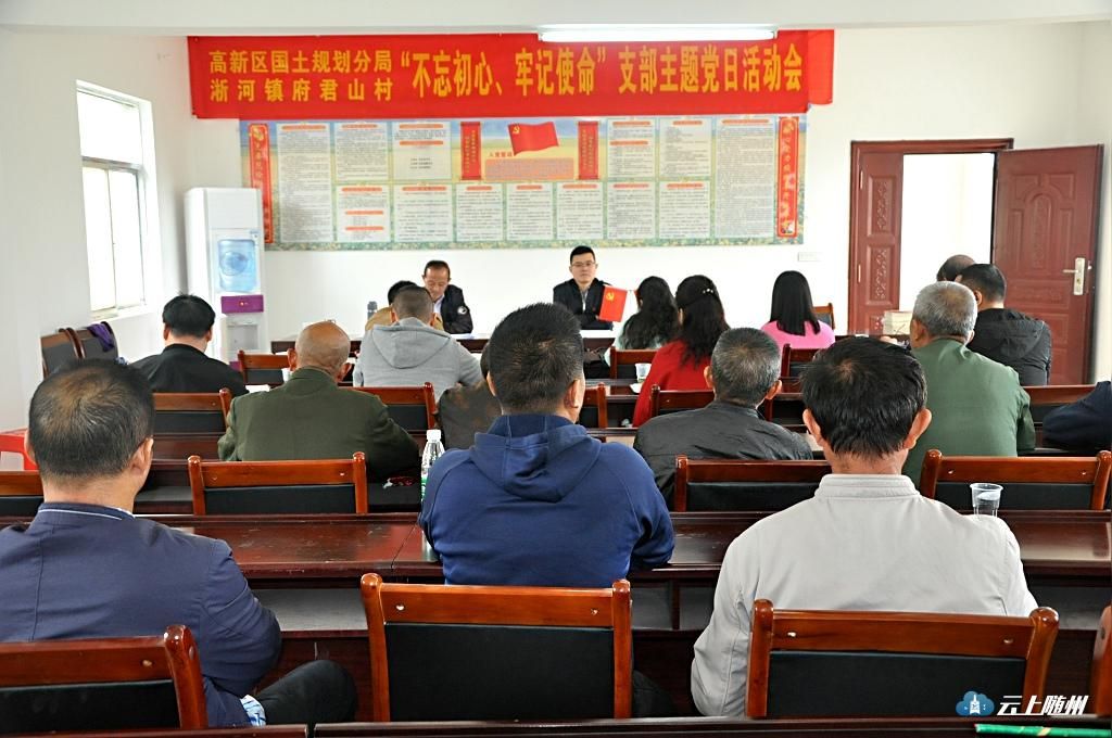 近日,市自然资源和规划局高新区分局党支部以“不忘初心、牢记使命”主题教育为主题,组织分局全体党员到扶贫村淅河镇府君山村,与该村农村党员一起共同开展“支部主题党日”活动,用行动助推精准扶贫工作。