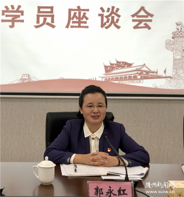 10月25日,市委副书记、市长郭永红到市委党校开展“不忘初心、牢记使命”主题教育调研座谈,她勉励党校学员,要加强思想淬炼、政治历练、实践锻炼和作风锤炼,努力在品质随州建设的实践中贡献智慧力量。