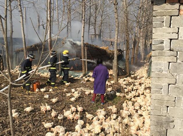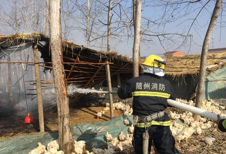 12月8日12时20分,随州支队接到报警称:随州市万店镇塔儿湾一养鸡场发生火灾,立即调集特勤消防中队出动2台消防车,14名官兵赶赴事故现场。