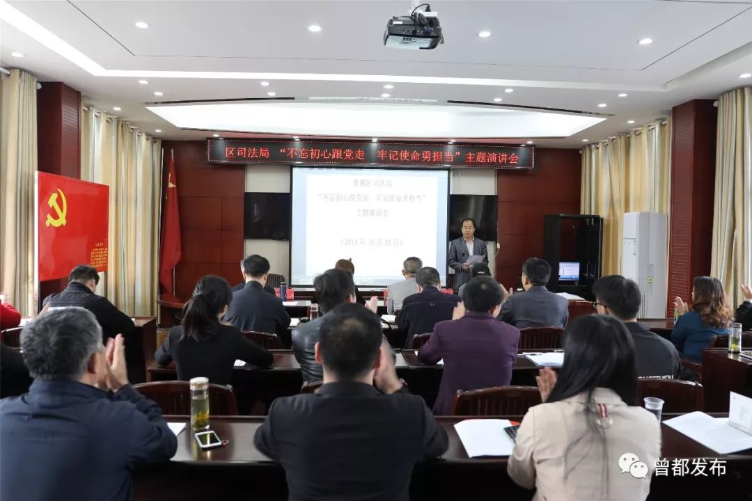 10月28日,曾都区司法局举办“不忘初心跟党走 牢记使命勇担当”主题教育演讲会。曾都区委第五巡回指导组到会指导。