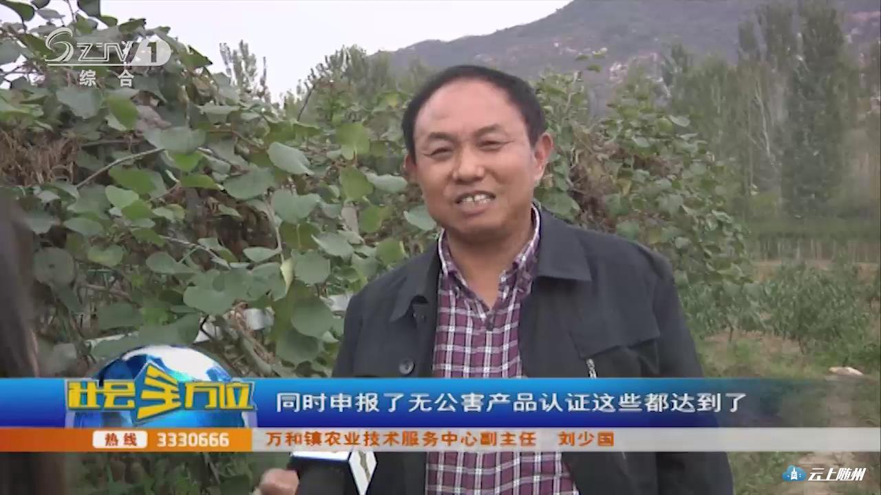 【采访】万和镇农业技术服务中心副主任 刘少国:我们万和镇猕猴桃协会从13年开始,注册了云堂韵随侯珠商标。同时申报了无公害产品认证,这些都达到了。从今年又开始申报绿色食品,不断在升级,为打造万和的绿色产品做好贡献。