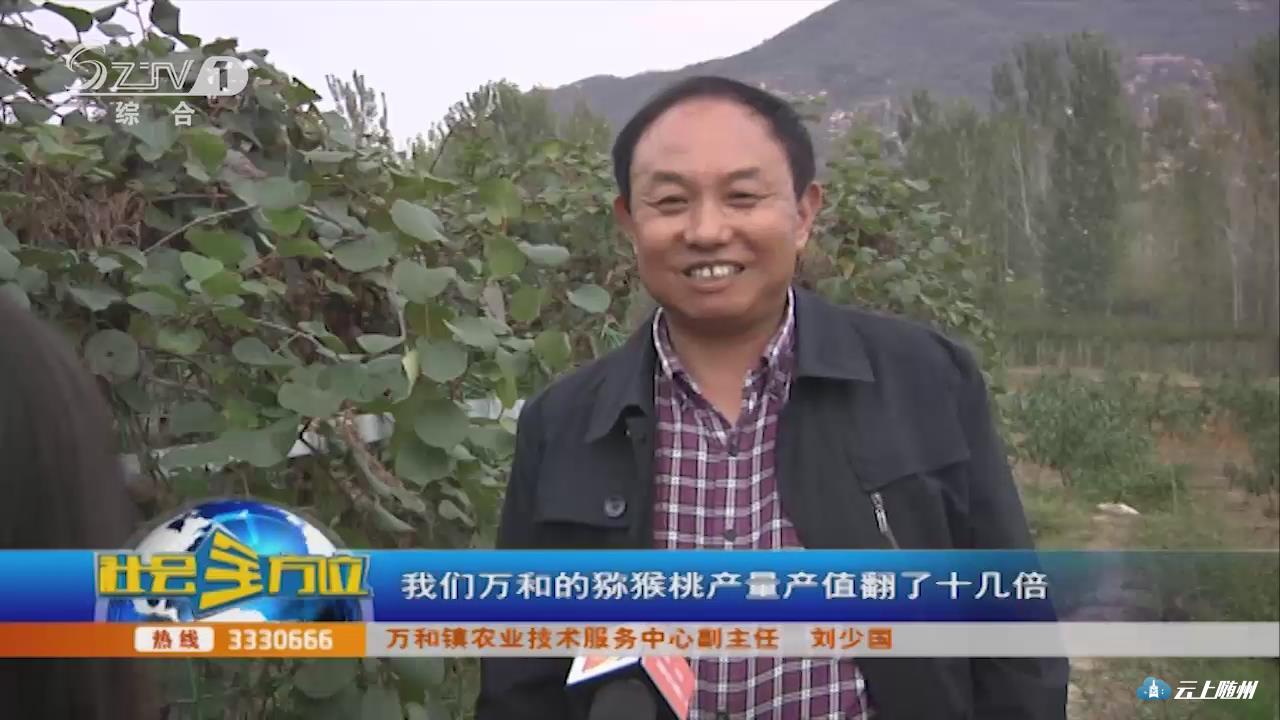 【采访】万和镇农业技术服务中心副主任 刘少国:过去不疏花疏果,现在疏花疏果。在施肥上,过去的单一施肥现在变成了有机肥与化肥相结合。在这样相结合的方式种植以后,我们万和的猕猴桃产量产值翻了十几倍。