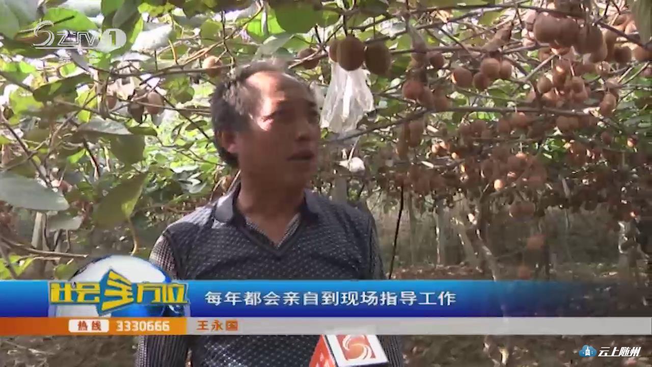 【采访】王永国:我们第一个是不打药,第二个是农家肥为主要原料。化学原料适当配合少部分来进行施肥。技术上,我们万河的猕猴桃协会刘站长,每年都会亲自到现场指导工作。