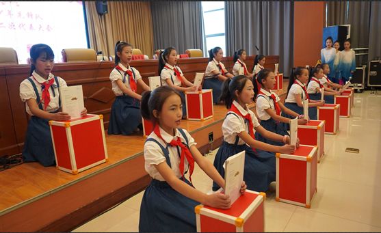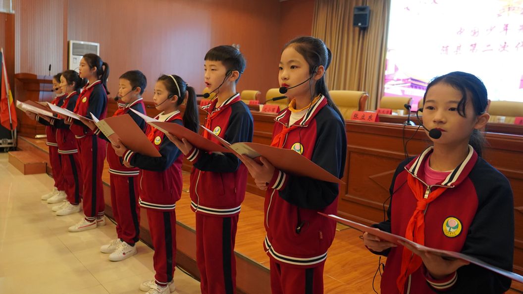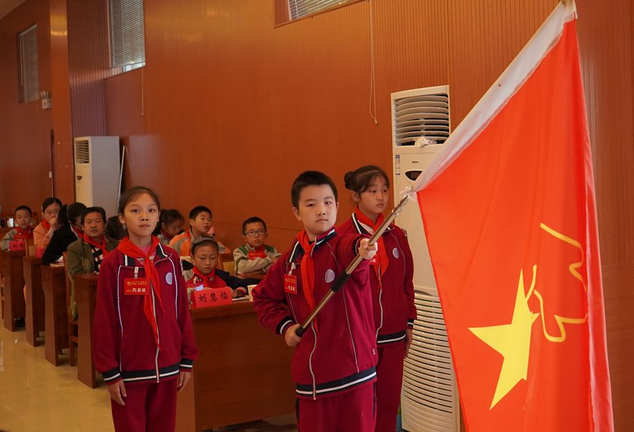 会议伊始,在庄严的音乐声中,同学们行礼迎接少先队队旗。随后,全体参会代表共同唱响《义勇军进行曲》《中国少年先锋队队歌》,少先队队员代表上台献词,号召全体少先队员们要胸怀祖国、努力学习。