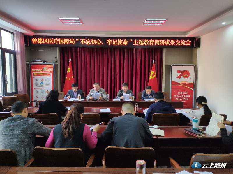 为全面梳理总结前一阶段开展调查研究的具体情况,更好地将调研成果转化为解决问题的具体行动,推进主题教育见实效。10月31日,曾都区医疗保障局组织召开了“不忘初心、牢记使命”主题教育调研成果交流会,曾都区委“不忘初心、牢记使命”主题教育第十巡回指导组相关领导应邀到会指导。