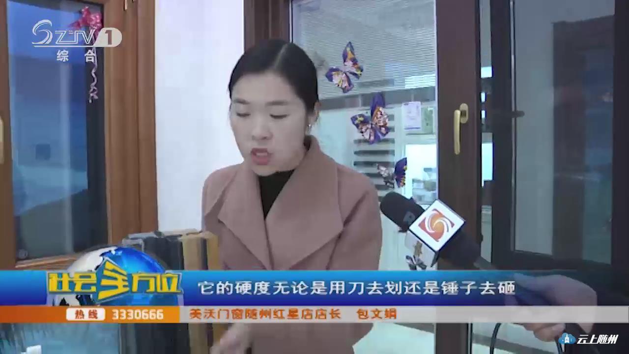 【采访】美沃门窗随州红星店店长 包文娟:我们用到的玻璃是三厘米的,5+20+5的中空钢化玻璃,我们会在里面把中空空气抽干,填充惰性气体进去,主要起到防止玻璃起雾,更节能更隔音。