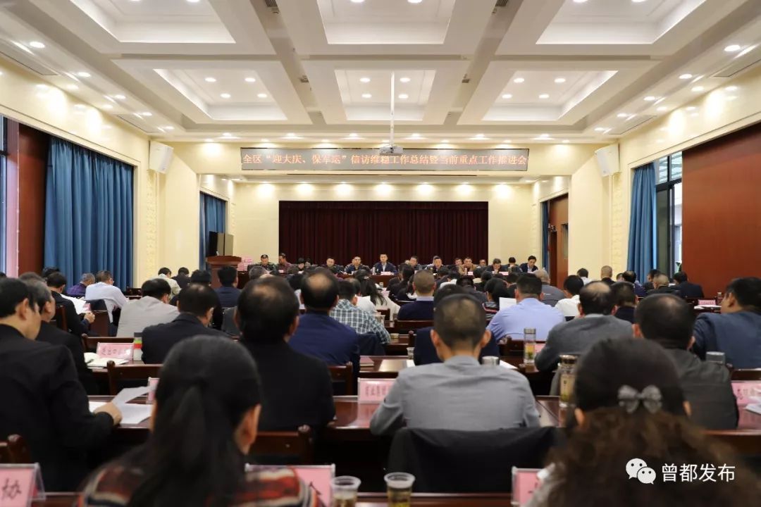 会上,徐正友就信访维稳工作进行安排部署,刘飞通报曾都区1-9月主要经济指标完成情况,董晓霞就“不忘初心、牢记使命”主题教育工作进行安排部署,汪兵就扫黑除恶工作进行安排部署,黄智勇就脱贫攻坚工作进行安排部署。