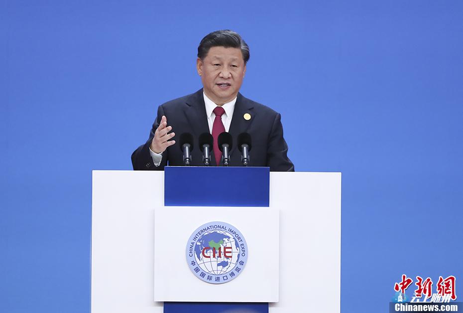 11月5日,第二届中国国际进口博览会在上海国家会展中心开幕。中国国家主席习近平出席开幕式并发表题为《开放合作 命运与共》的主旨演讲。中新社记者 杜洋 摄