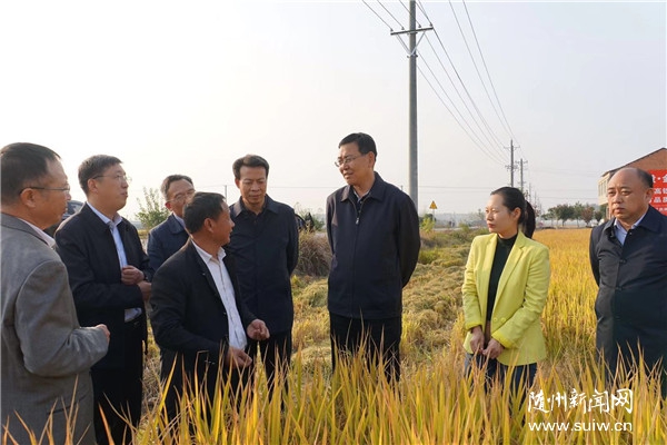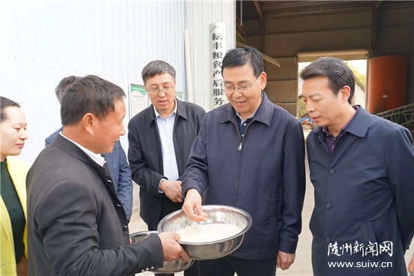 在随县安居镇,正值优质稻收割的季节。陈瑞峰来到随县耘丰种植专业合作社的种植基地和加工厂区,认真查看优质稻品种品质,详细询问优质稻推广种植、技术服务、市场销售等方面情况和合作社增收带贫情况。合作社负责人介绍,今年种植优质稻2000亩,预计优质稻产值远高于其它普通水稻品种,明年将全部改种优质稻,示范带动更多农户发展优质稻种植;合作社通过流转土地、雇工等方式,带动100余户贫困户增收。陈瑞峰对合作社以优质稻产业带动群众脱贫致富取得的成效表示满意,强调要充分发挥合作社的示范带动作用,开展良种引进、技术服务指导、优质稻收购加工,大力推广优质稻种植,整体提升随州水稻种植品质,叫响“随州香稻”品牌,让“随州香稻”产业带动更多农民增收致富。