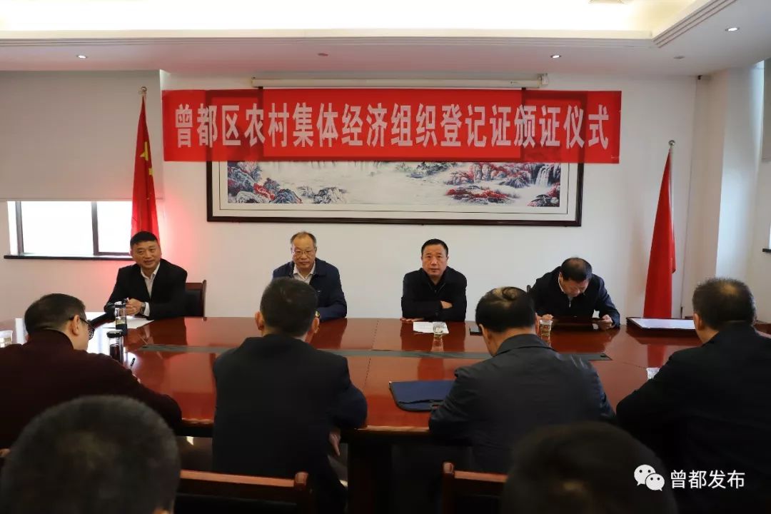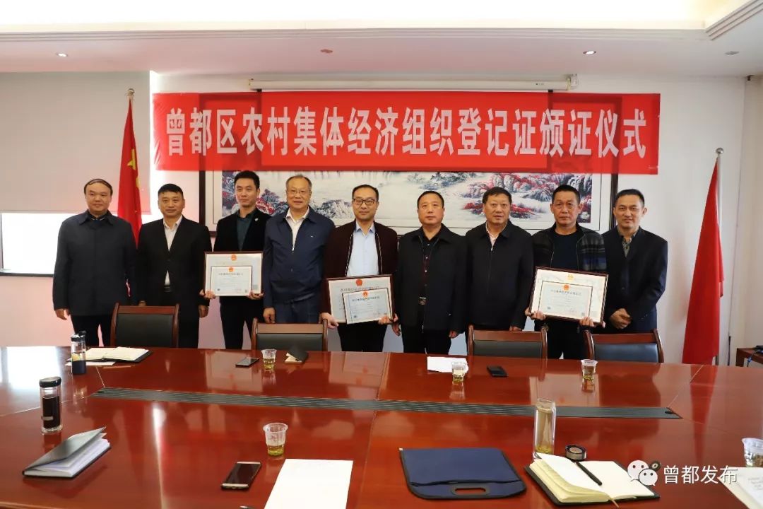 11月6日,曾都区农村集体经济组织登记证书颁发仪式在东城办事处舜井道社区举行。