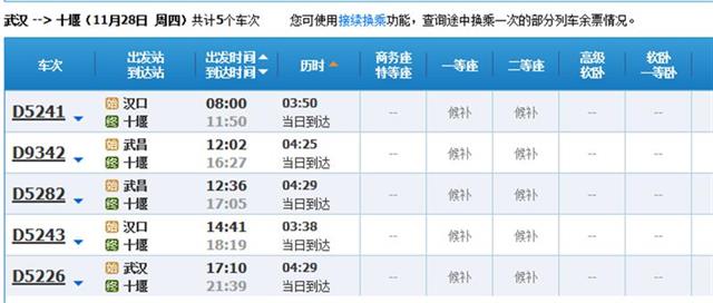 记者在中国铁路12306官网查询发现,不仅是武汉至随州,11月28日至12月5日武汉至襄阳、十堰的动车票也无法购买。虽然官网上显示武汉至上述三地的车票都在预售期内,但都显示“候补”状态,点击“候补”则显示当前席别候补人数已满。