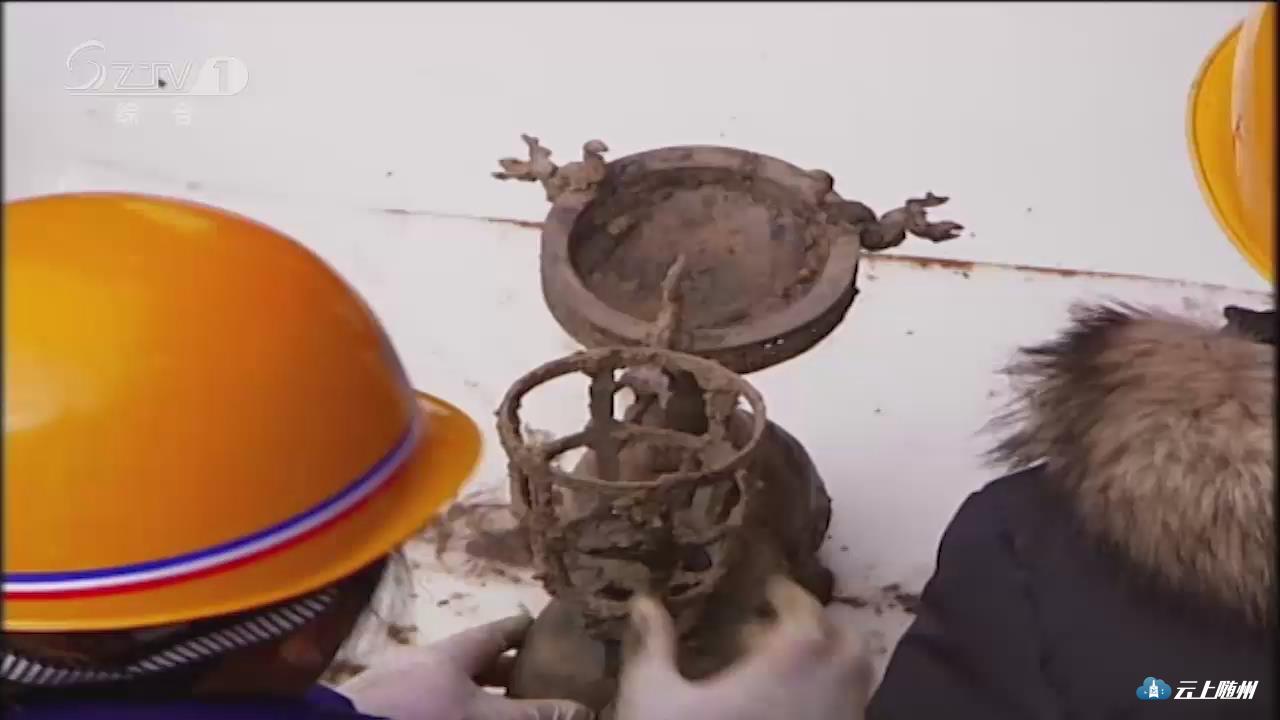 【采访】随州博物馆馆长 黄建勋:我身旁的这个提链壶是上个世纪90年代,在东风油库发掘出土的一件非常珍贵的艺术价值非常高的器物,这件器物应该是曾侯戉阝墓出土的,这件器物的特点是艺术价值非常高,它上面提链的造型非常精致,腹部和颈部的花纹是一圈的龙纹,一圈凤纹交叉铸造的,而且龙纹和凤纹里面还填漆,它的制作艺术价值非常高,而且还有铭文,叫曾仲姬提链壶 ,这是我们整个义地岗出土的精品文物中具有代表性的一件青铜器皿。
