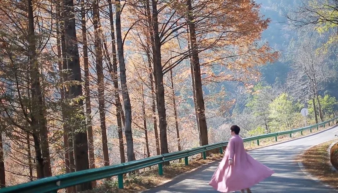 穿梭在山中,秋天的光线忽明忽暗