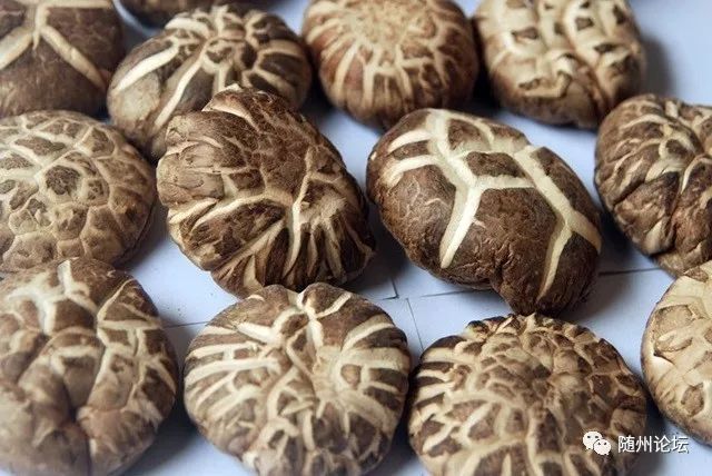 随县香菇尤以花菇质佳,其菌柄短壮,肉质肥厚,花纹明显,美观匀称,香味浓郁。