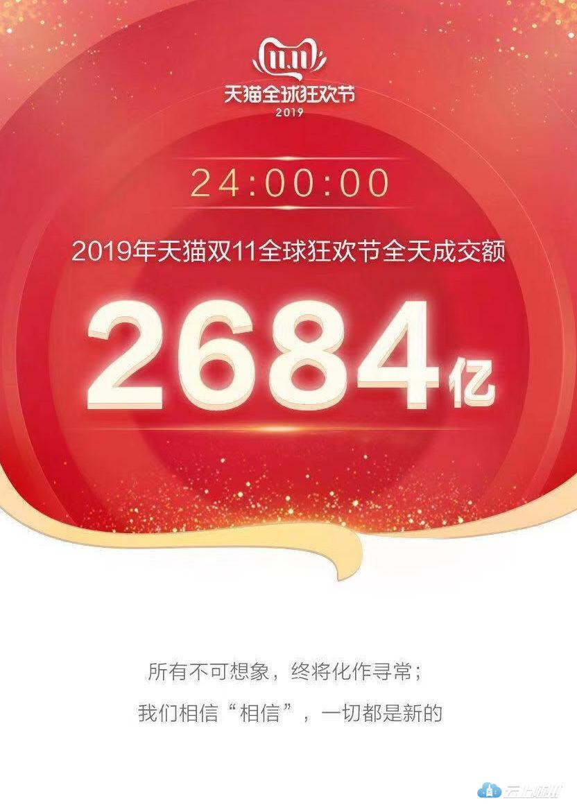 “双11”终于结束了,天猫官方发布公告,最终交易额定格在2684亿元。