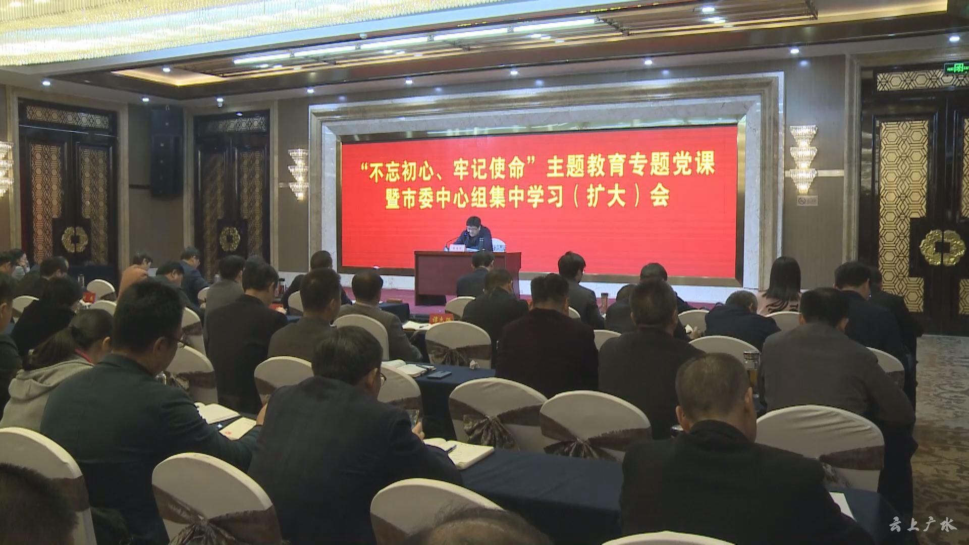 11月11号,广水市委书记黄继军在“不忘初心、牢记使命”主题教育专题党课暨市委中心组第十五次集中学习(扩大)会议上讲党课时强调,认真学习贯彻党的十九届四中全会精神,压紧压实工作责任,坚决扛起广水高质量发展的时代重任。