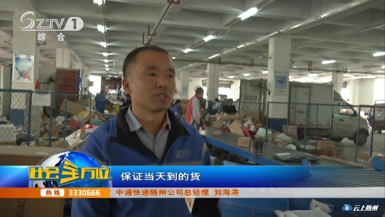 【采访】 韵达快递随州公司总经理 何人喜 中通快递随州公司总经理 刘海涛:快递高峰从今天开始就到来了,今天的量大概有3万票左右,过两天可能会是最高峰,可能达到4万票,车辆人员预案,我们都准备的非常充分,车辆备得很足,人员也备得很足,所以说双11对我们来说没有什么问题,不会压货。操作部除了公司自有的20人以外,临时招聘了15人左右,应对双11旺季,投递人员我们大概储备了20个临时工。保证当天到的货,尽量第一时间分出来,第一时间派送到客户手中。